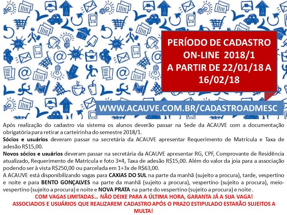 Atenção!!! Se você fez o cadastro no sistema admesc.com passa na ACAUVE para retirar a carteirinha, o prazo é até 16/02/18, caso já tenha feito todos os processos... Só curtir as férias...☺