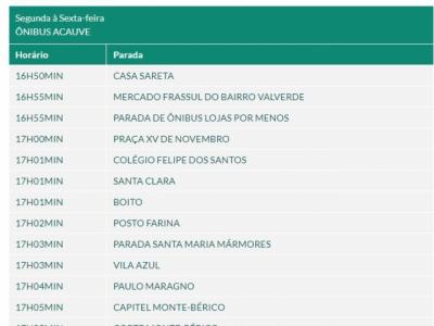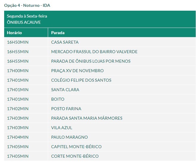 - NOTURNO - De segunda a sexta-feira: ônibus da ACAUVE -