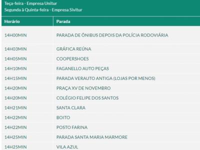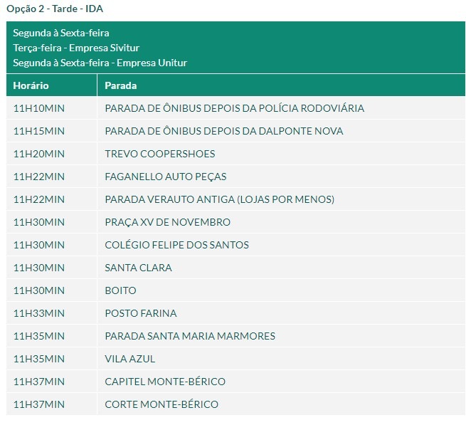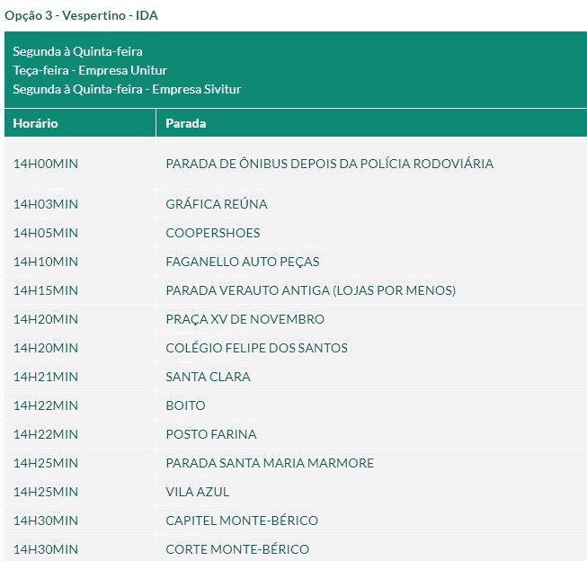 - VESPERTINO - empresa SIVITUR - Segunda, Quarta, Quinta-feira -