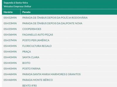 Informamos que a partir do dia 01/03/2018 haverá transporte para Caxias do Sul passando pelas paradas e horários sendo realizados pelas empresas: