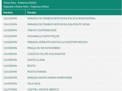 - MANHÃ - UNITUR (micro) de segunda a sexta-feira -