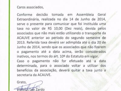 Conforme o 2º assunto da pauta da assembleia do dia 14/06/2014, tornamos público a decisão tomada pelos presente, conforme foto em anexo: