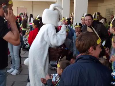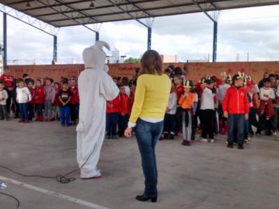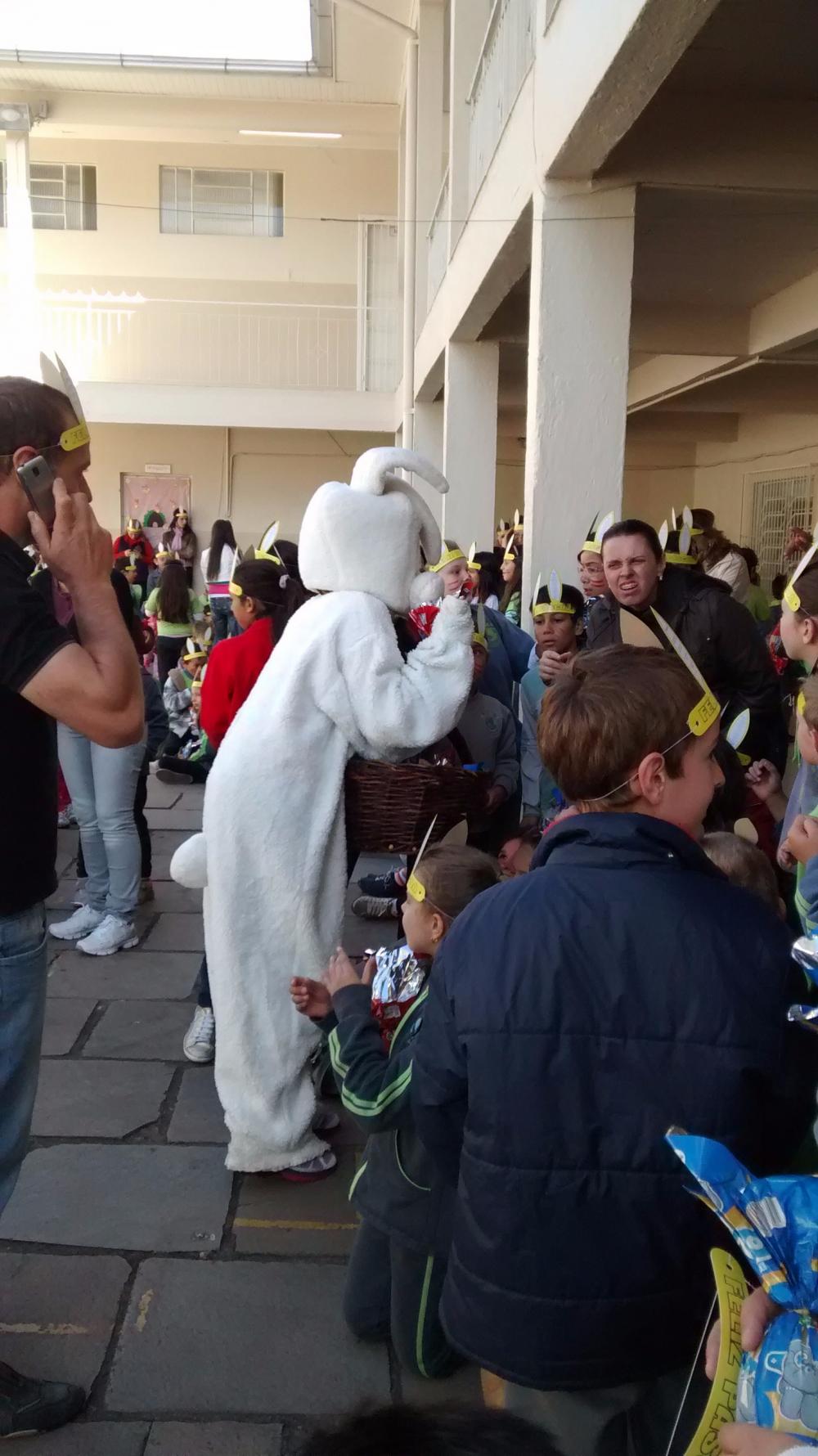 Nesta segunda, dia 14, a SMEC, juntamente com os representantes de várias entidades do município que marcam presença, como voluntários, distribuíram ovos de páscoa nas escolas: EMEI Irmã Carmelita, EMEI Anita Dall’Agnol Amantino, EMEF Adriano Farina, EMEF Irmã Joana Aimé, EEEF Virgínia Bernardi, EMEF Felipe dos Santos, EMEF Senador Alberto Pasqualini e EMEF Irmão Jerônimo. Nesta terça, dia 15, as escolas restantes receberão os ovos de chocolate e as atividades que contam com pintura do rosto, orelhas de coelho e cantoria da tradicional canção “Coelhinho da Páscoa”. Ao todo, 2400 alunos serão presentados.
